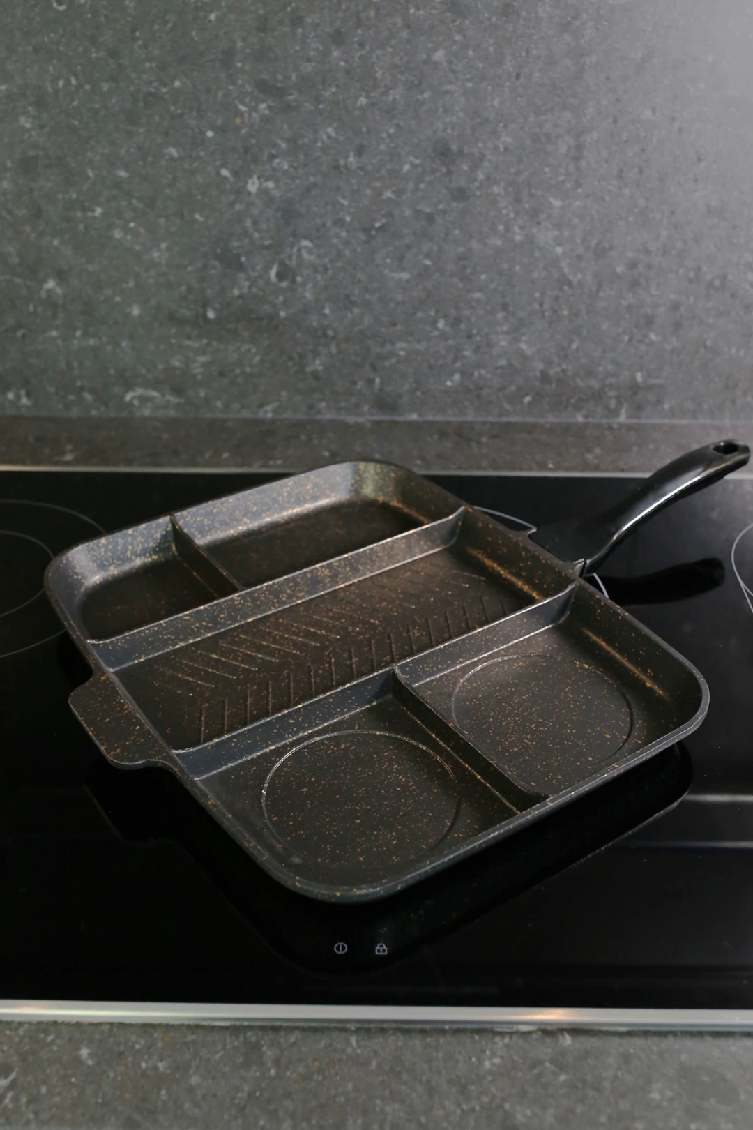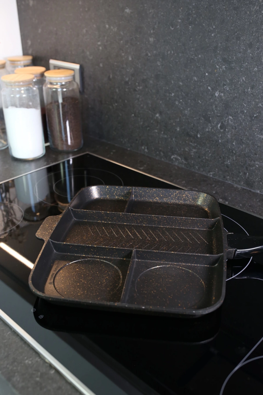 | Kodu: AHM0016 5 Gözlü Granit Bölmeli Döküm Tava Mutfakta ve Kampta Kullanıma Uygundur |
