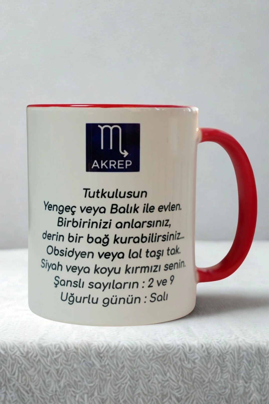 Burcunun enerjisini her yudumda hisset! Akrep burcunun tutkulu, güçlü ve derin duygularını yansıtan bu özel porselen kupa, senin için tasarlandı.