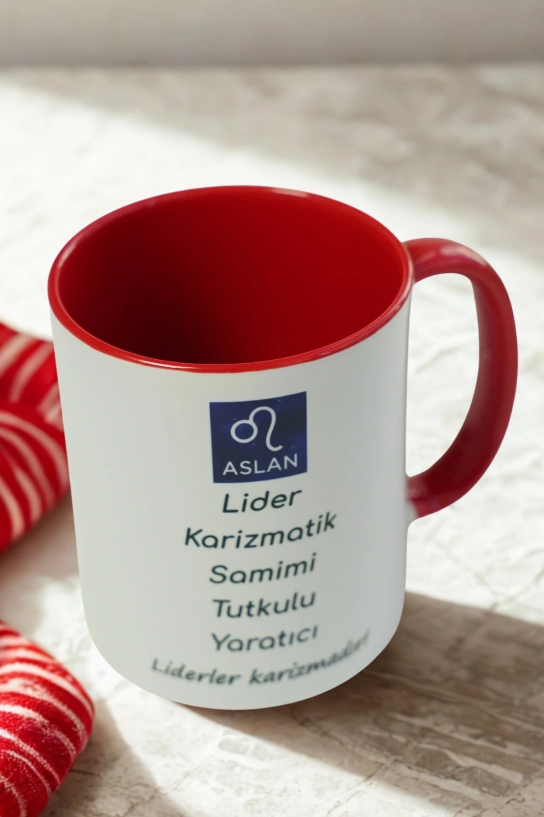 Aslan burcunun güçlü duruşunu, lider ruhunu ve karizmatik enerjisini yansıtan bu özel porselen kupa, hem şık tasarımı hem de burca özel baskısıyla dikkat çeker. Kırmızı iç yüzey ve kırmızı kulp detaylarıyla modern bir görünüm sunan kupa üzerinde Aslan burcunun karakteristik özellikleri yer almaktadır: