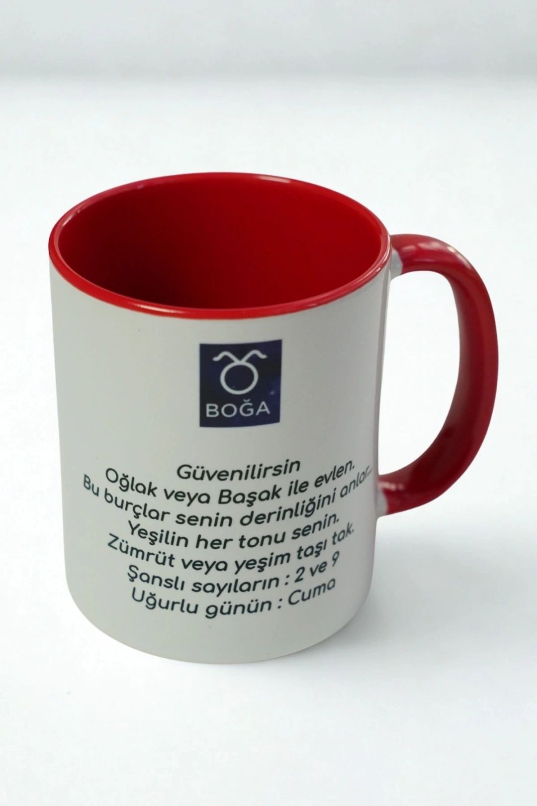 Boğa burcunun güven veren ve derin karakterini yansıtan bu özel tasarım kupa, hem günlük kullanım için ideal hem de anlamlı bir hediye alternatifi sunar. Kırmızı iç yüzeyi ve kulp kısmıyla modern bir görünüm sağlayan kupa üzerinde Boğa burcuna özel metinler yer alır: