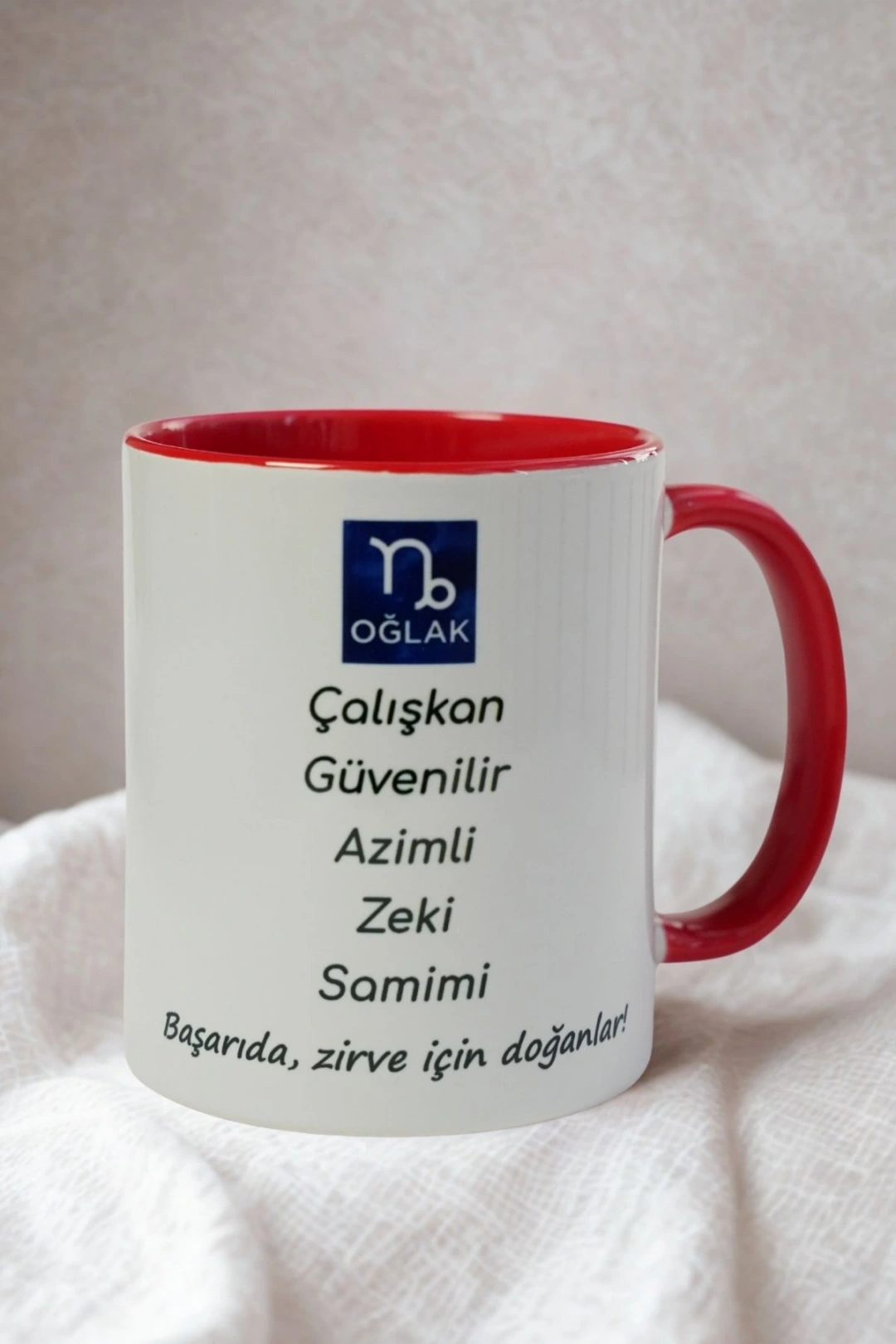 Oğlak burcunun güçlü özelliklerini yansıtan bu özel tasarım porselen kupa, hem şık hem de anlamlı bir hediye seçeneğidir. Kupanın ön yüzünde Oğlak burcunun sembolü ve karakteristik özellikleri; “Çalışkan, Güvenilir, Azimli, Zeki, Samimi” yazılıdır. Alt kısmında ise Oğlak burçlarının motivasyon dolu sözü yer alır: “Başarıda, zirve için doğanlar!”