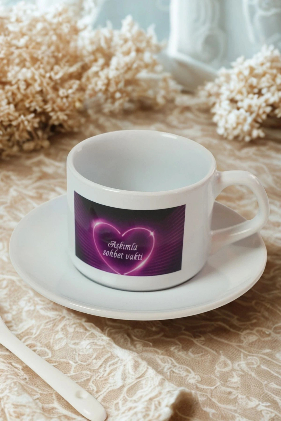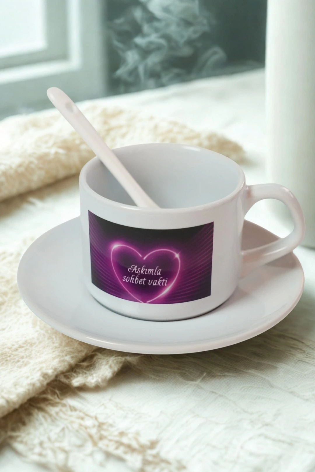 Romantik, anlamlı ve özel bir hediye arayanlar için tasarlanan bu şık porselen kupa, üzerindeki “Aşkımla sohbet vakti” yazısı ve neon kalp tasarımıyla ideal bir tercih sunuyor.